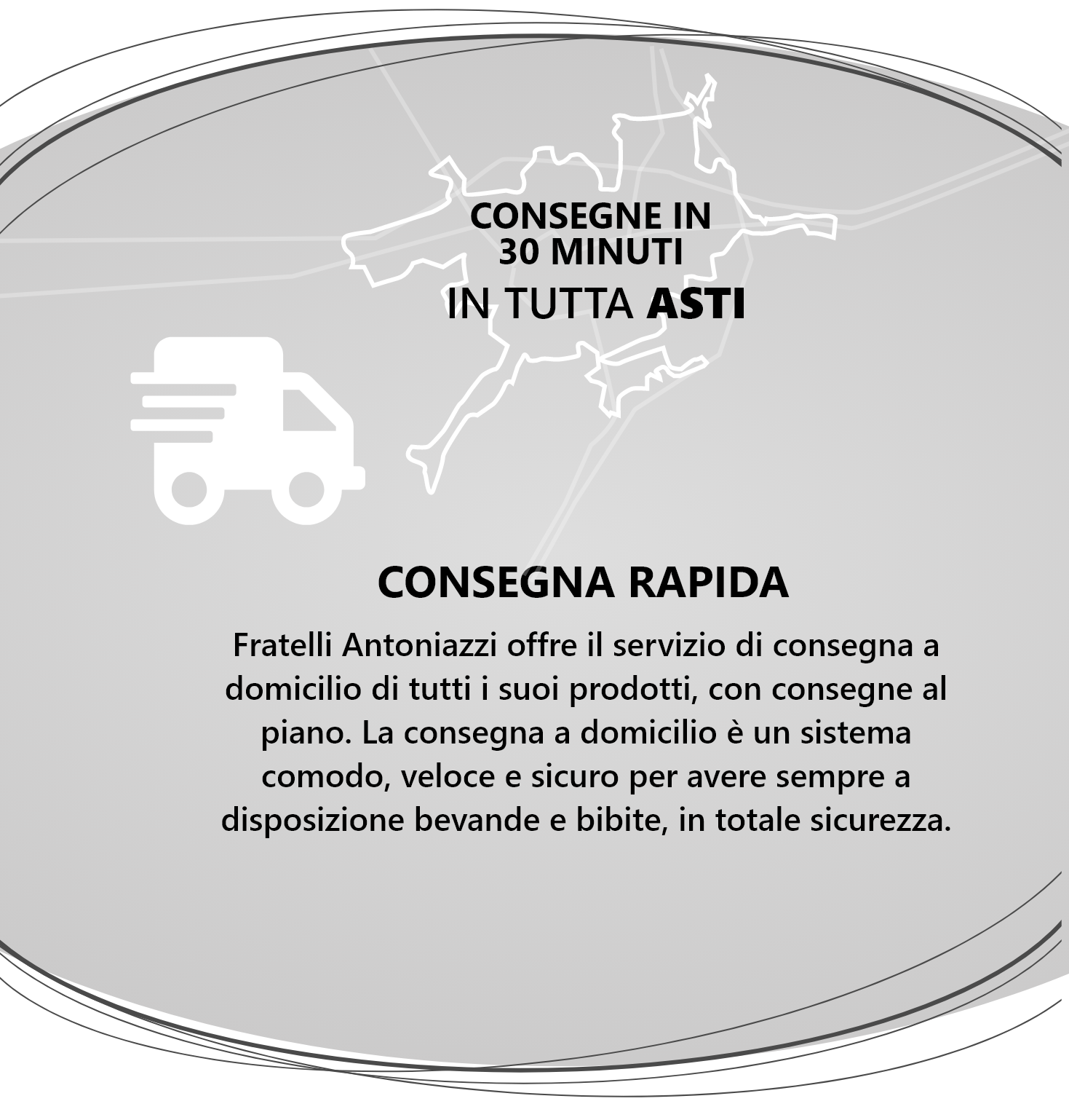 La nostra azienda effettua consegne a domicilio, anche al piano, in tutta la provincia di Asti, con il servizio di vetro a rendere che permette di risparmiare sui costi della plastica e di riciclare correttamente il vetro utilizzato.